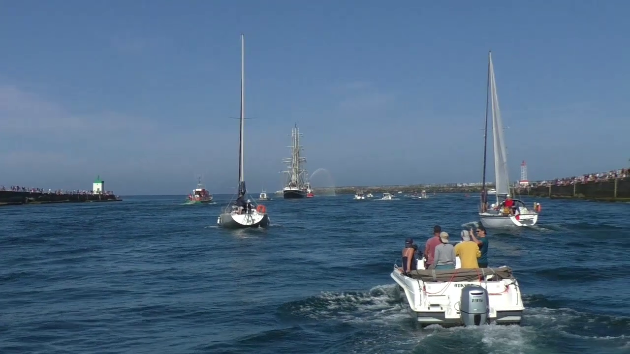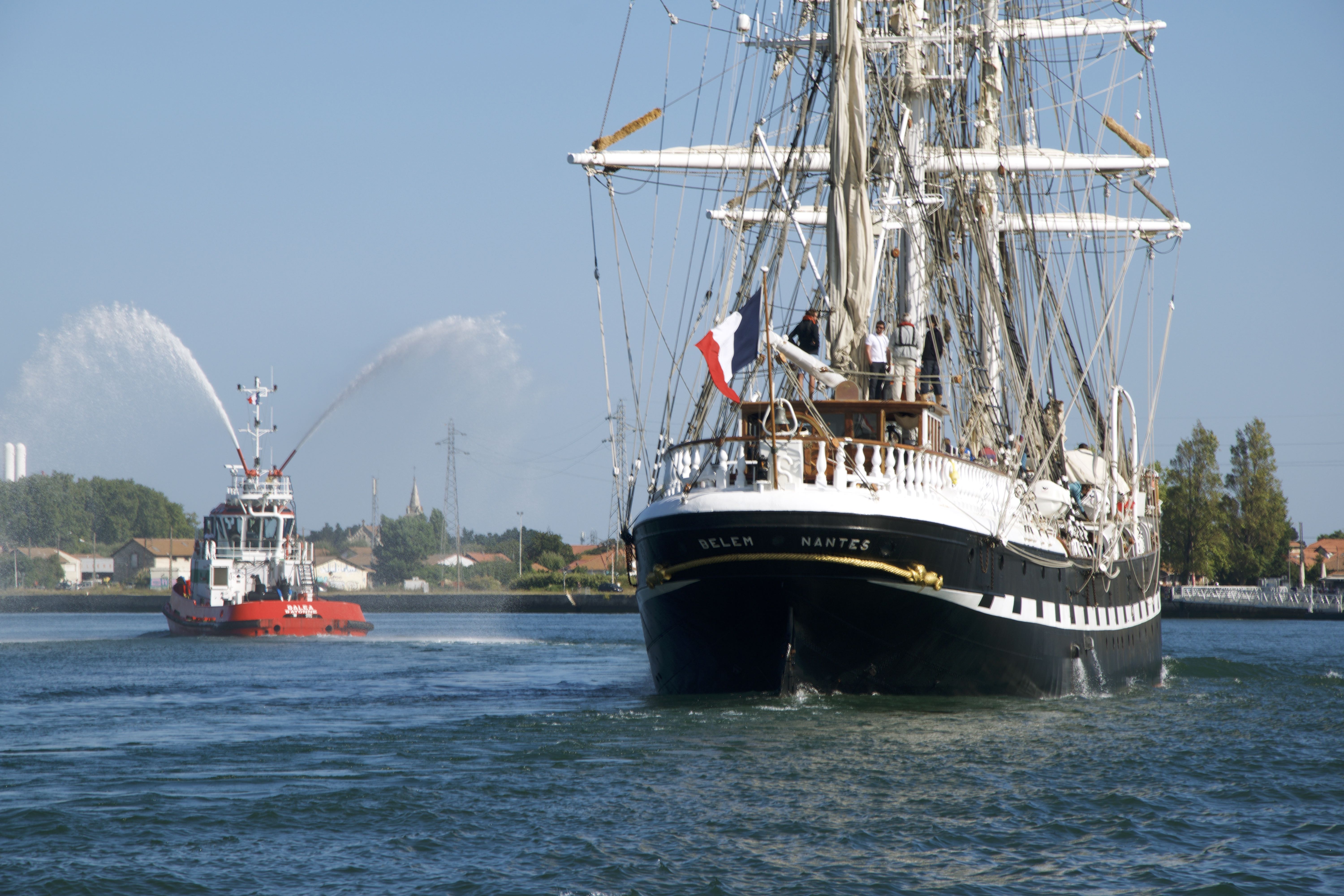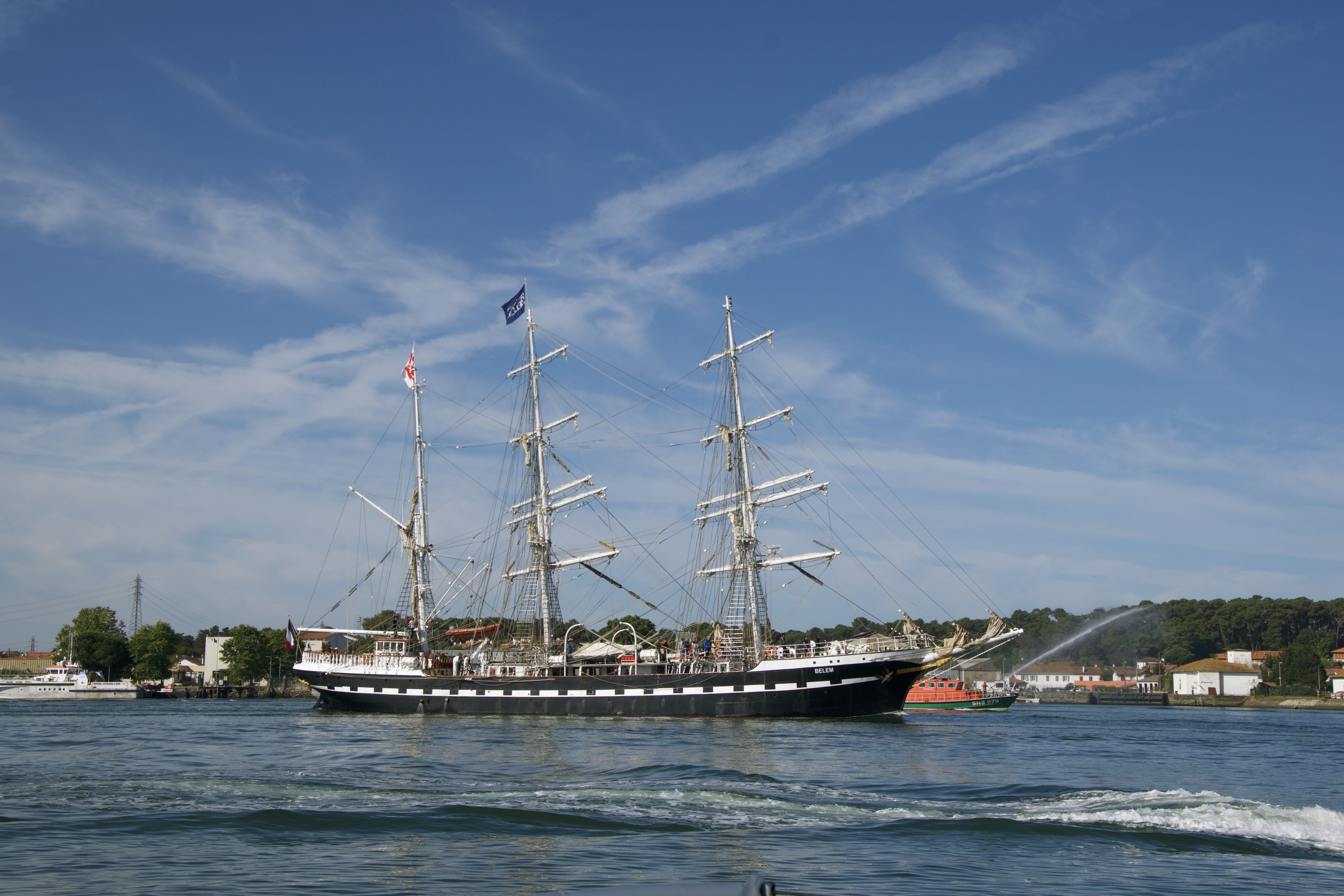 Le Belem était bien accompagné, sur l'eau et sur les jetées, pour son départ du port de Bayonne a destination de Saint-Nazaire.